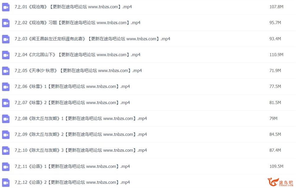 中考必背古诗文 七八九年级古文视频 百度网盘