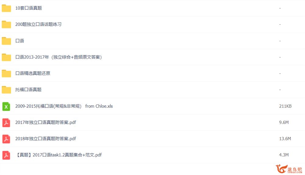 托福口语真题 口语话题练习+托福真题 百度网盘下载