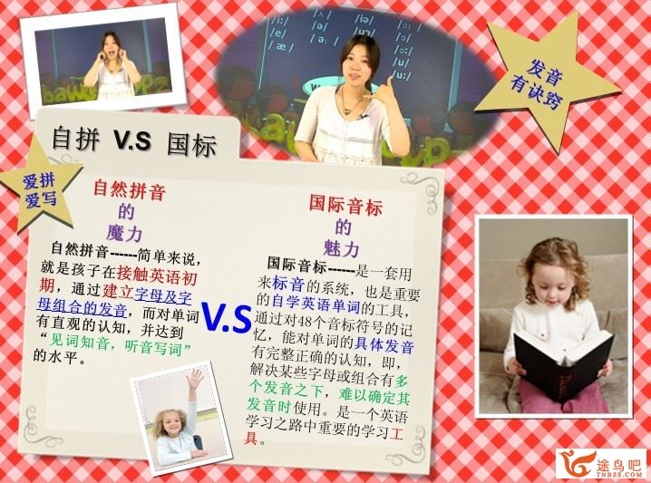 以新颖、通俗易懂、适合孩子学习习惯的方式讲授国际音标,正反两向把音标用活,真正让音标成为一辈子的工具。