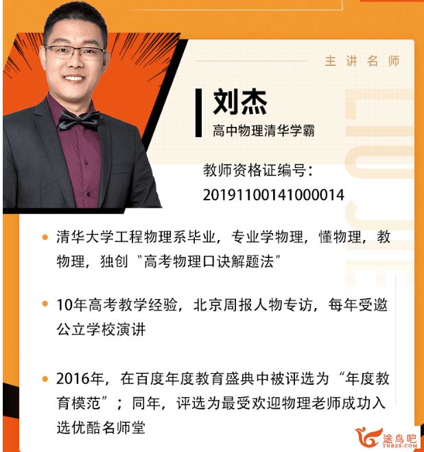 [刘杰物理]2020高考 刘杰物理二三轮复习联报之目标双一流班 刘杰老师——祖籍山东,高考夺魁,学在清华园,心系天下事,热爱教育,专注教学。 2006年山东济南高考理科状元/考入清华大学工...