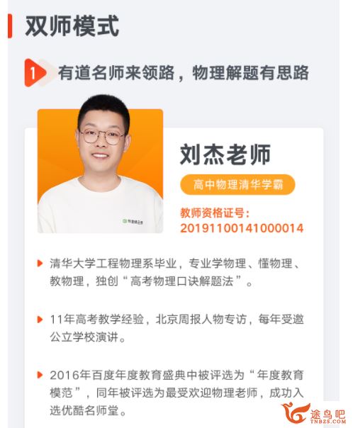 名师简介: 刘杰老师——祖籍山东,高考夺魁,学在清华园,心系天下事,热爱教育,专注教学。 2006年山东济南高考理科状元/考入清华大学工程物理系; 2007/2008年清华大学中美大学生联合...