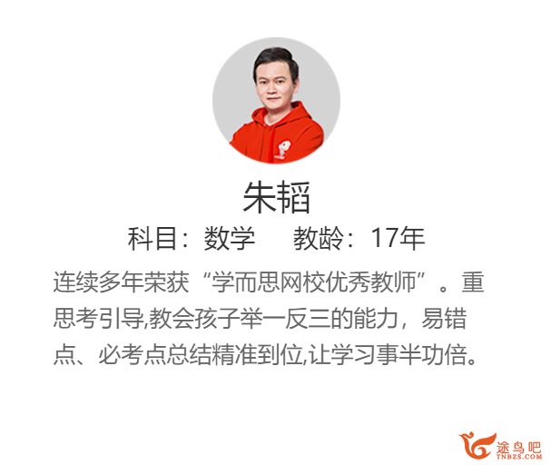 某而思网校 朱韬 天利38套中考数学配套视频[R-S5讲全] 朱韬,男,学而思网校初中数学教师,毕业于首都师范大学,专注于预备,初一,初二,初三教学。 中文名朱韬别 名韬哥国 籍中国民 族...